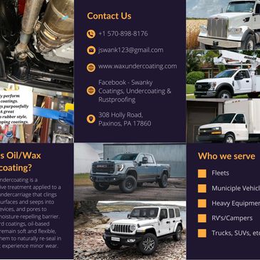 Our shop has over 20 years of experience in rust prevention and treatment. We specialize in " Stay Wet" style coatings. Substantually haulting rust when applied properly to frame rails, underbody, wheel well seams , rocker cavities and more